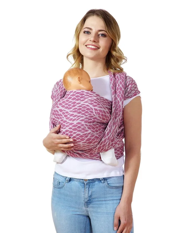 Слинг-шарф: полотно длиной до 5-6 метров и шириной в 70 сантиметров. Его можно наматывать несколькими разными способами. Позволяет носить ребенка не только спереди, но и за спиной.