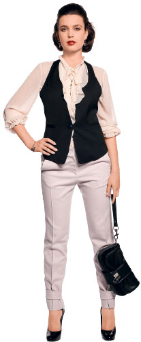 ДеньОСЕННЯЯ ГАММА Куртка, Naf Naf; юбка, Gunex; сумка, Alba; шапка, United Colors of Benetton; ботильоны, Chie Mihara | ВечерВЕЧЕРНЯЯ КЛАССИКА Жилет, Pinko; брюки, Celine; сумка, Svetski; серьги, браслет и подвеска, Zoppini; туфли, Corso Como |