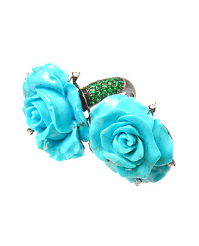 Так же хороши две голубые розы из бирюзы в следующем кольце. Они напоминают пару в вечном танце любви и нежности. И могут символизировать вечное единение мужского и женского начала.