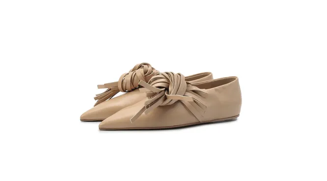 Когда-то балетки вышли из моды именно потому, что комбинации с ними стали кричащими, аляповатыми. Бантики соседствовали с леопардовым принтом, стразы — с перфорацией. Поэтому, чтобы в этот раз не прогадать, просто выбираем лодочки в минимальной «комплектации» — модели под The Row сделаны именно в этом стиле.