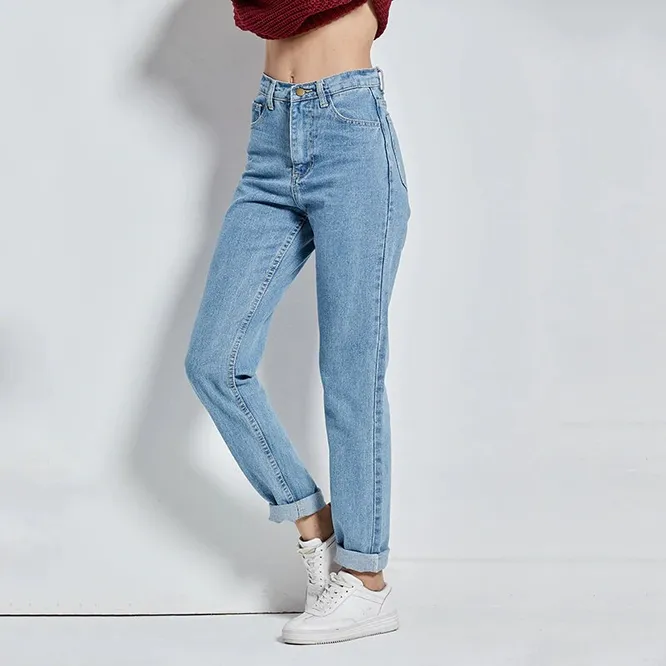 Базовые однотонные джинсы с высокой талией и свободной посадкой в районе бедер. Модели представлены в трех оттенках: светло голубом, темно-синем и черном. Материал плотный, швы ровные, цвет не тускнеет после стирки. На удивление штанины достаточно длинные, что особенно актуально девушкам высокого роста.