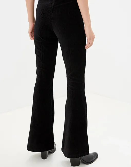 Высокая талия, обтягивающий крой, клеш от колена, глубокий черный цвет и мягкость вельвета – ох, горячо! С такой парой можно хоть куда, универсальный цвет подойдет любому повседневному образу, а интересная форма будет отлично смотреться и в вечернем гардеробе. В общем, маст-хэв всех маст-хэвов сезона.