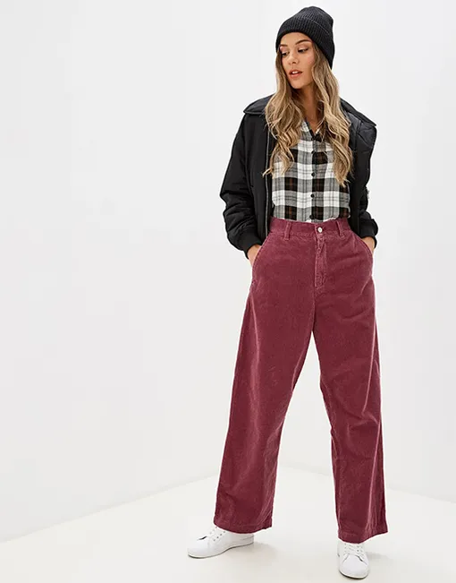 И пускай гранж появился только в середине 80-х, кто мешает тебе дополнить образ пацанки широкими вельветовыми брюками лилового цвета? А что? Цвет волос дочери Курта Кобейна Фрэнсис Бин именно такой. Разбавляем бунтарские образы парой таких брюк.