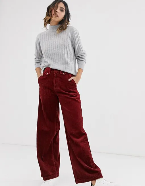 Добавляем немного небрежности и щепотку дерзкого пофигизма мешковатыми брюками винного цвета. С ними ты легко почувствуешь себя героиней фильма о дождливом Нью-Йорке, которой срочно необходимо надеть любимый свитер и засесть в кофейне. Эта пара брюк станет твоим верным спутником на выставках современного искусства, за бокалом красного вечером и в кино с любимым.