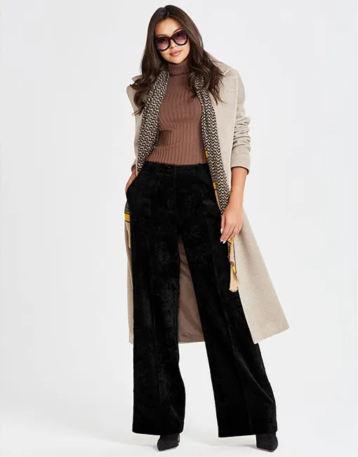 Если ты привыкла не играть в босса, а быть настоящим лидером в офисе, выбирай эту модель. Тут всё без лишних деталей, строго по делу, как и твои финансовые презентации. Широкие брюки можно носить в классическом черно-белом сочетании с рубашками или с цветными нитами и свитерами.