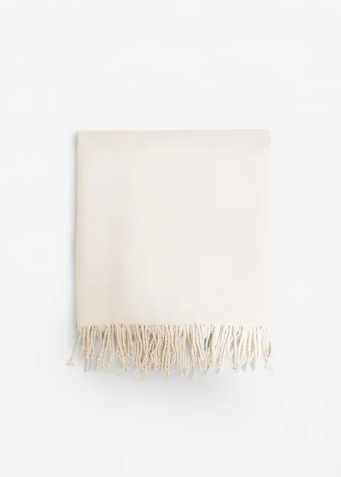 Белый вязаный шарф с бахромой, Mango