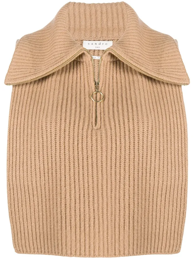 Стильная манишка с воротником на молнии однозначно поможет тебе выделиться. Комбинируй вязаный аксессуар с базовыми рубашками или лонгсливами.