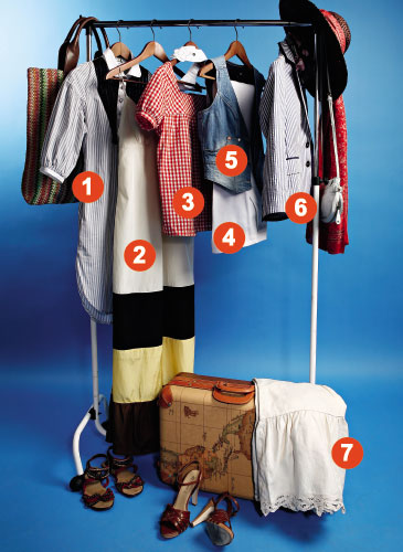 | 5 ДЕНЬ 1, 7 Чтобы не испытывать дискомфорта, сочетай платье-рубашку с пышной юбкой. | 6 ДЕНЬ 3, 7 Клетка «виши» и юбка в деревенском стиле настроят тебя на безмятежный отдых. |