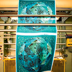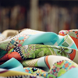 Готовые платки подвергаются сушке и ополаскиванию составом для закрепления цвета | Все 120 метров пронумерованы. Если на каком-то участке замечен брак, этот метр сжигается |