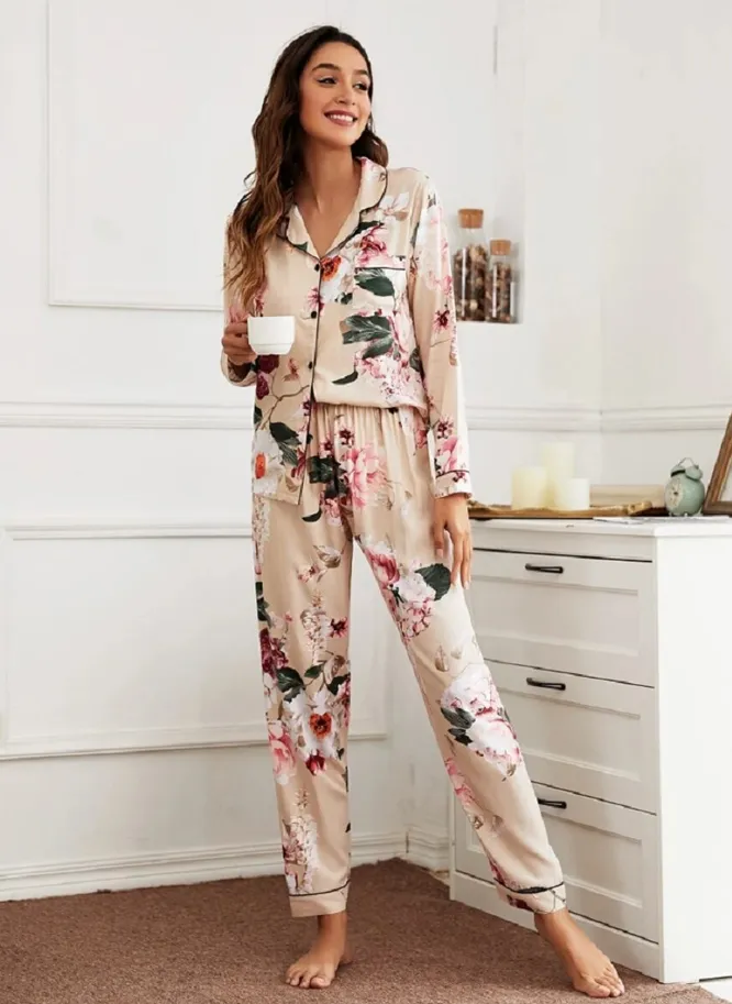 Шелковая пижама с принтом в виде крупных цветов выглядит стильно и вполне подходит не только в качестве одежды для сна или дома. В ней вполне можно попить кофе на балконе или за столиком в саду, если ты живешь за городом, и быть уверенной: в глазах соседей ты выглядишь безупречно.
