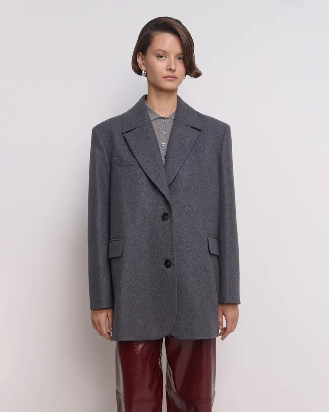 Почему? Потому как бы ни были популярны сейчас женственные силуэты и приталенные фасоны, осенью на свитер облегающий жакет никак не наденешь – даже при большом желании. А вот свободное прямое пальто-пиджак выручит примерно всегда: и когда ты носишь толстый вязаный джемпер, и когда выгуливаешь изящное платье по фигуре.