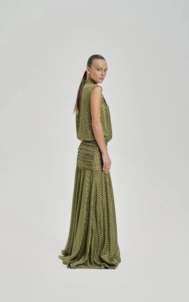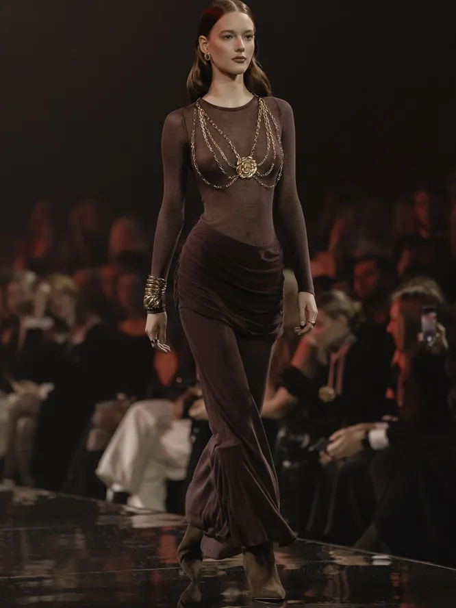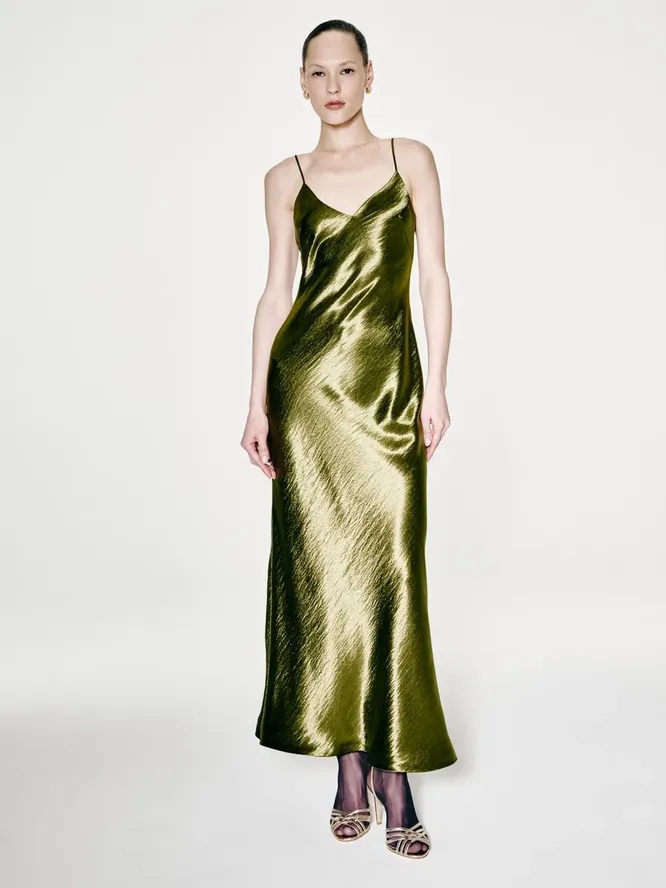 Шоколад, зеленый, металлик: 30 идеальных платьев в цветах 2025 года