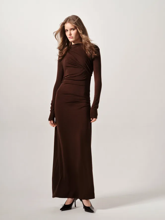 Коричневый и черный – древесные оттенки, которые тоже значатся в списке трендов. Бинго, опять повезло! И здесь у нас тоже большой выбор: от светлой охры до насыщенного шоколадного (он, кстати, может быть холодным и теплым – дополнительные вариации) и черного – твое идеальное платье точно найдется в подборке.