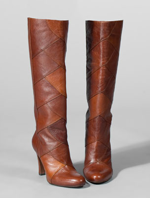 Коричнево-рыжие сапожки от FRYE своим цветом отсылают нас к осенней природе. Рисунок кроя сапог напоминает засушенные листки гербария, который каждая девочка собирала в детстве. В таких сапожках приятно походить в сухой солнечный осенний денек, когда воздух морозен и свеж и напоен ароматом опавших листьев.