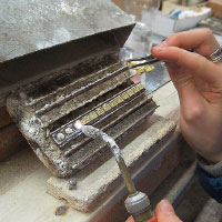 Плавка золота, серебра и меди | Изготовление из полученных слитков тонких пластин | Изготовление символов на аппарате-пантографе |