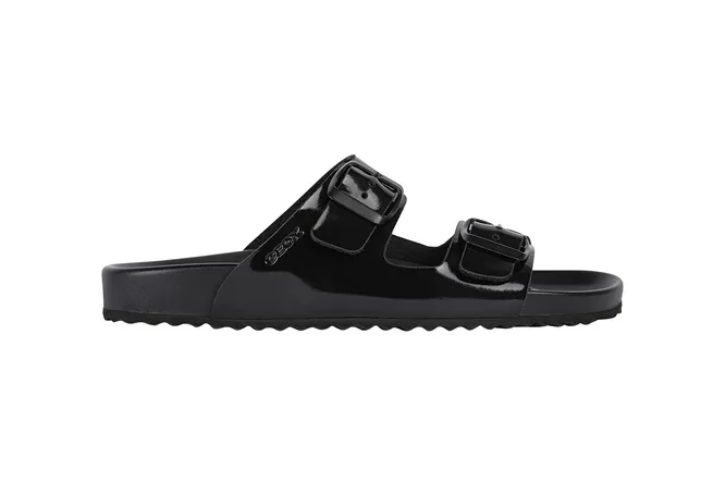 Мягкая, зернистая кожа, два широких ремешка с лаконичными пряжками, плетенная подошва — стильное сочетание на лето. В таких шлепанцах твоим ногам будет также комфортно, как в домашних тапочках.