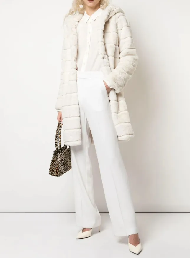 Освежить гардероб поможет белая экошуба. С ней можно создать элегантный лук, если надеть с кремовыми широкими брюками и светлыми джемпером. Если предпочитаешь что-то более неформальное, то сочетай шубу с голубыми джинсами в винтажном стиле, ботинками на шнуровке и контрастным шарфом.