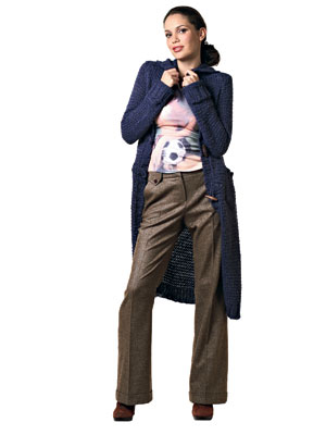 ![]() | Лондонский шик Трикотажное пальто – очень полезная и модная вещь. Такое пальто позволит тебе легко менять образы от самых смелых до выдержанных и элегантных. Пальто, Naf Naf; блуза, Alain Manoukian; кардиган, юбка, Patrizia Pepe; лосины, Calzedonia; туфли, Stella McCartney; сумка, Tj Collection |