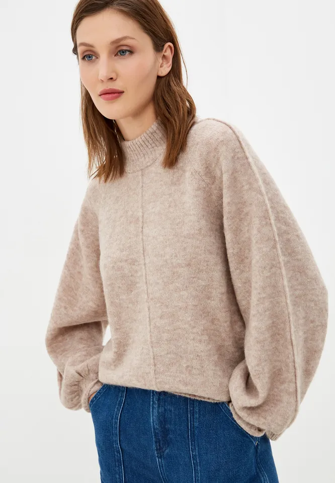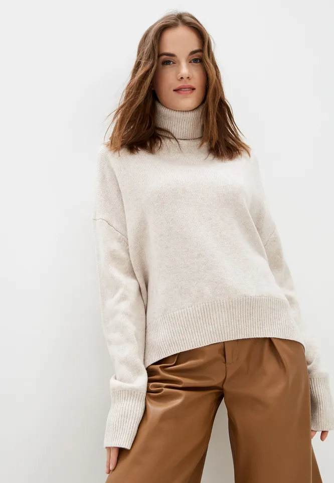 Если ищешь что-то базовое и нейтральное, советуем купить бежевый женский свитер из шерсти с высоким горлом. Носи его с широким расклешенными джинсами и обувь на каблуке, если хочешь собрать стильный casual-образ. более расслабленный аутфит – свитер в паре с джоггерами или трикотажными штанами. Если собираешься на свидание или светское мероприятие, сочетай свитер с юбкой миди и сапогами на каблуке.