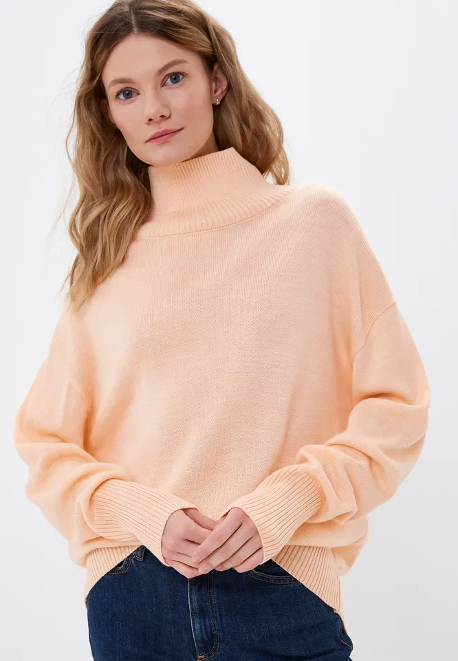 Пастельный свитер из шерсти и акрила добавит повседневным образам нежности и романтичности. Он одинаково хорошо смотрится как со светлыми, так и с темными и яркими вещами. Одна из удачных комбинаций – пастельный персиковый свитер и коричневые брюки из кожи. Также к нему идеально подойдут бежевые вельветовые брюки прямого или расклешенного кроя.