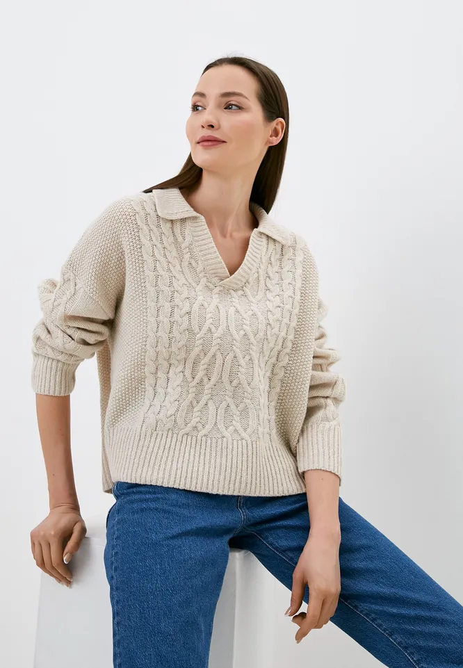 Модный вязаный свитер из шерсти с вырезом в стиле поло станет одной из самых модных покупок этой зимы. Лучшим дополнением к нему станут спортивные брюки или трикотажные штаны. Кроме того, он органично смотрится с классическими брюками на высокой посадке и нейтральными повседневными джинсами. Бежевый цвет делает его универсальной вещью в гардеробе, которая легко сочетается со множеством других вещей.