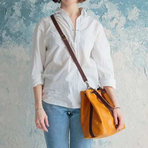Симпатичные кожаные шоперы на длинных ремнях ты найдешь в мастерской москвички Елены E.K.Goods и в магазине петербуржской команды B for bags (они создали шопер приятного и актуального сиреневого цвета).