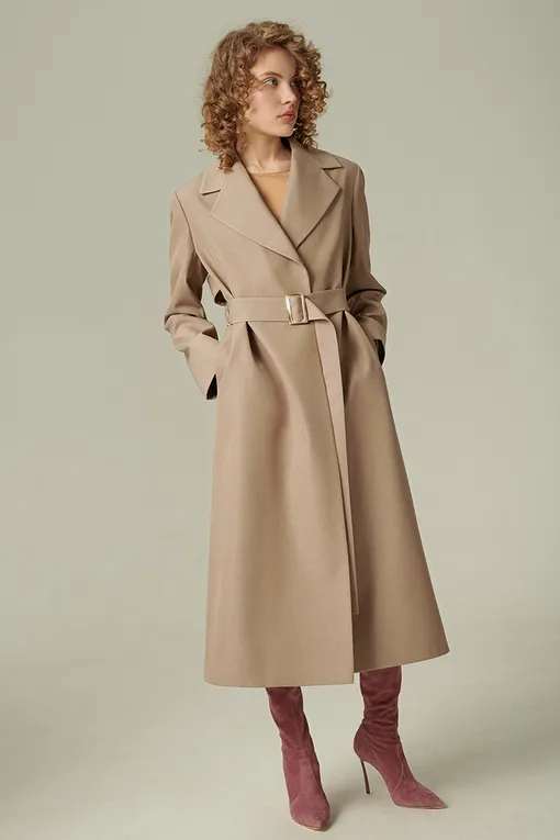 Песочное прямое пальто из шерсти «Уста к устам», 15 200 рублей