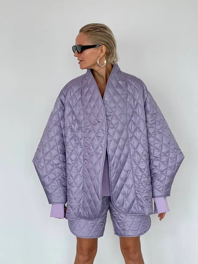 Просим любить и жаловать — стеганые пальто и куртки. Они же легкая версия пуховиков, но более тонкая и изящная, а потому идеальная на погоду между осенью и зимой. Благодаря гладкой фактуре ты легко можешь выходить на улицу в дождь и не бояться, что до работы доберешься насквозь промокшей. А из-за невысокой по сравнению с зимними куртками плотности такие пальто можно носить с осенней капсулой — светлыми брюками, челси, ботинками и даже кроссовками, если они утепленные.