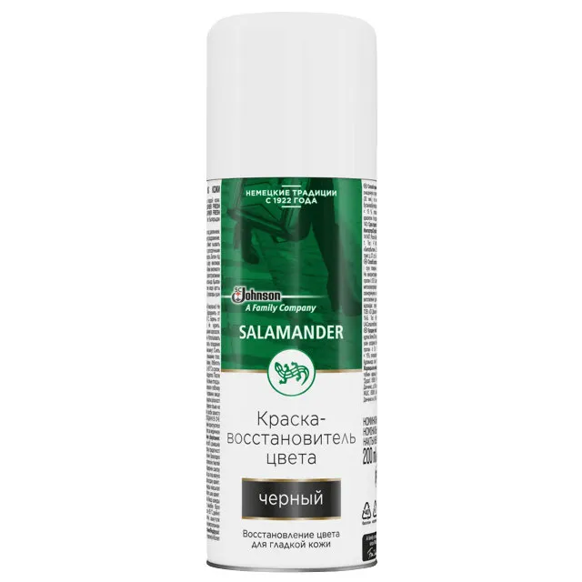 Аэрозольная краска для гладкой кожи, которую можно использовать для быстрого обновления цвета. Черная краска– незаменимая вещь в уходовой коллекции.