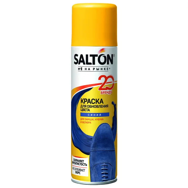 Спрей-краска синего цвета замаскирует признаки износа и обновит цвет замшевой, нубуковой и велюровой обуви.