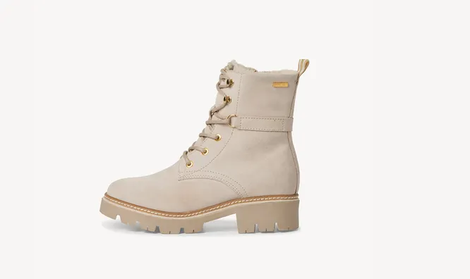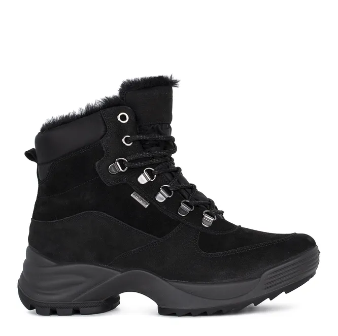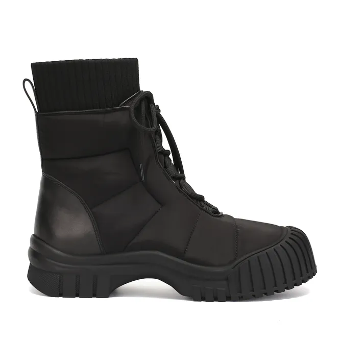Чаще всего зимние ботинки выше, чем осенние и уж тем более летние, что совершенно логично – нужно закрывать щиколотку. Эта особенность делает их похожими на ботинки для хайкинга, а если еще и добавить мощную шнуровку с металлической фурнитурой, то сходство и вовсе поразительное. Что к лучшему: тренд на «походную» обувь вместе с меховой подкладкой – идея отличная!