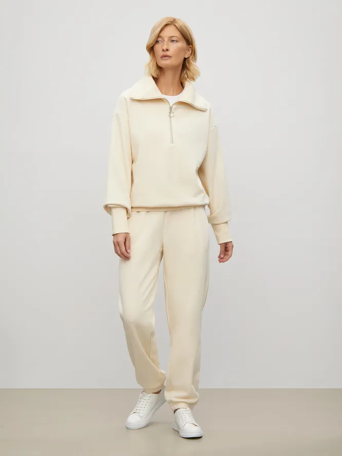 В подборке ниже не просто так много светлых костюмов. Во-первых, оттенок сливочного масла крайне популярен, во-вторых, именно такая благородная палитра делает костюм «городским», годным к выходу в свет. С шубой, пуховиком или дубленкой выйдет отличный look!