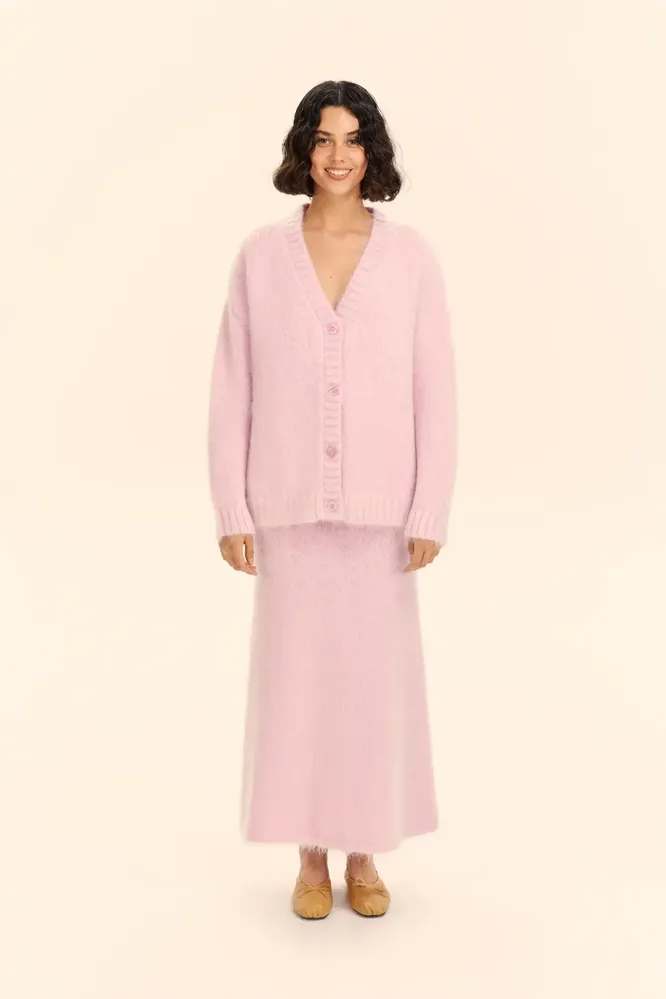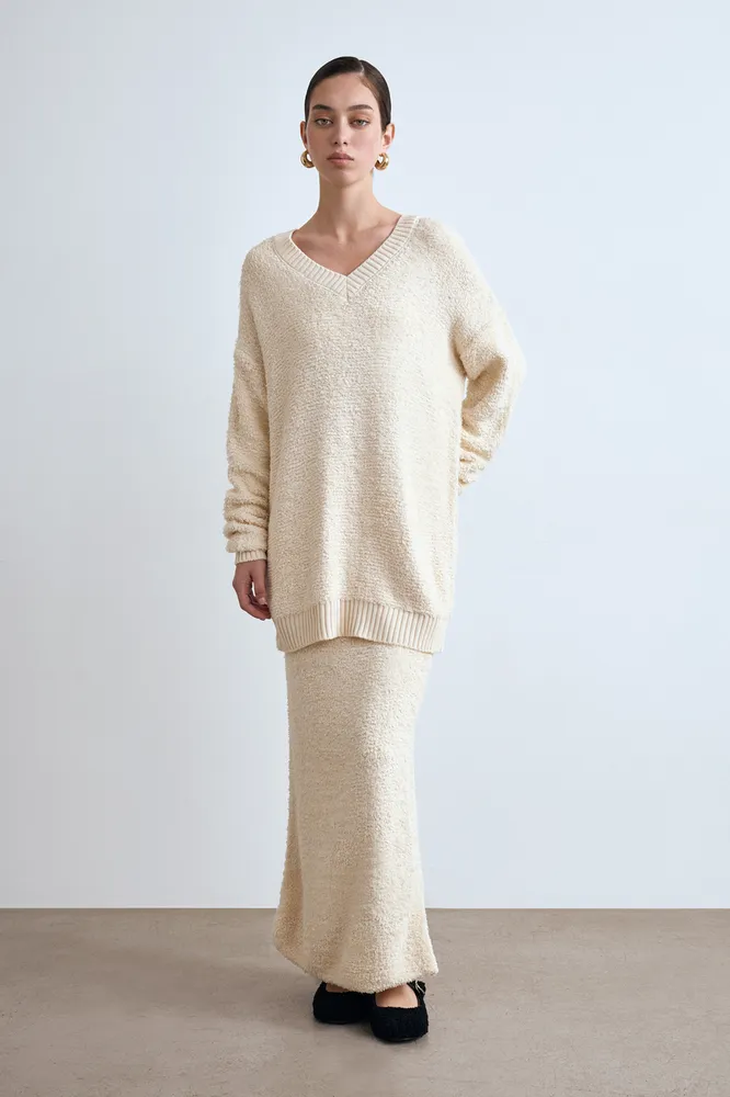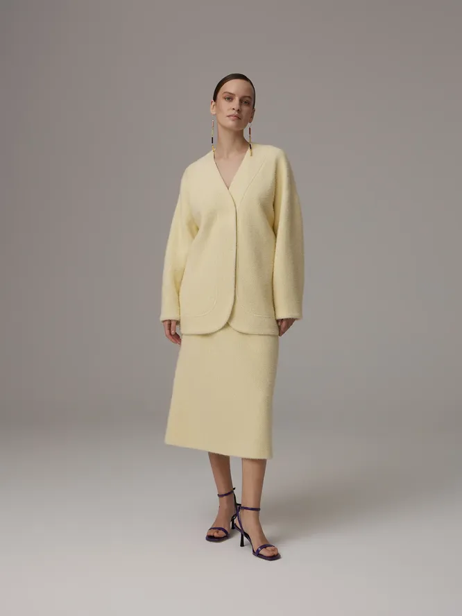 Еше одна популярная сейчас фишка – пушистые костюмы. Очень уютные! Непременно выбирай удлиненный кардиган в версайзе, а юбке важно сесть ровно на бедра, чтобы она не полнила тебя. Найти подходящий под все критерии костюм сейчас не так-то сложно, бренды предлагают массу вариантов. Обновка уже почти твоя!