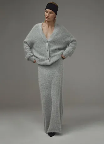 Второй вариант – трикотажные костюмы с юбкой. Зимой-2024/2025, кстати, они особенно полюбились фэшэниста, и мы эту страсть разделяем. Если полистаешь страницы модных блогеров, заметишь, что чаще всего они носят комбо «кардиган плюс юбка» – запоминай, это тренд.