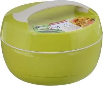 Tescoma Family изготовлен из пластика и не предназначен для многодневных походов, но достаточен для того, чтобы сохранить тепло котлет или горячих закусок при поездке за город на пикник. Температурный режим поддерживает двойная стенка, предотвращающая быстрое охлаждение. Рассчитан термоконтейнер на 1,5 л продукта.