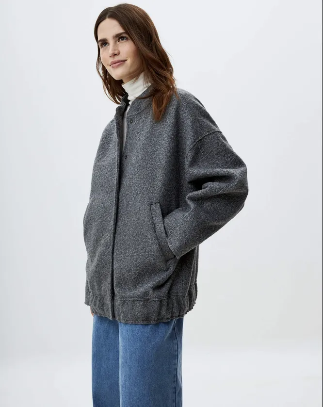 Удлиненный бомбер из тонкой шерсти или полиэстера в благородном сером цвете мелькает в соцсетях модных блогеров достаточно часто. Что неудивительно, ведь вещь эта действительно удобнаяво всех смыслах: фасон идет любому типу фигуры, а легкий материал подходит к переменчивой майской погоде. И цвет такой универсальный!