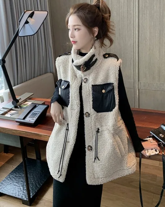 Поклонницам оверазйза точно понравится белый уютный жилет из овчины большого размера. Попробуй носить его поверх строгого жакета в мужском стиле – получится интересное сочетание из противоположных по характеру вещей. Чтобы подчеркнуть талию, дополни жилет поясом-веревкой или кожаным ремнем. Пушистый белый жилет отлично сочетается с грубыми кожаными вещами. В этом смысле к нему подойдут кожаные брюки, массивные ботинки, сумки из тисненой кожи.