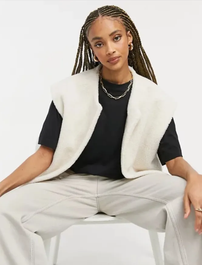 Температура за окном стремительно понижается, и если твое зимнее пальто или пуховик уже не справляются, предлагаем «утеплить» их удлиненным жилетом (или безрукавкой) из овчины. Выбирай модели свободного прямого кроя в базовом оттенке, чтобы жилет можно было легко комбинировать с разными вещами. Наш выбор – жилет в бежевом оттенке. Он легко станет частью модного монохромного образа: надень его с кремовым свитером и брюками цвета слоновой кости – такой лук смотрится дорого, благородно и подойдет под разные случаи.
