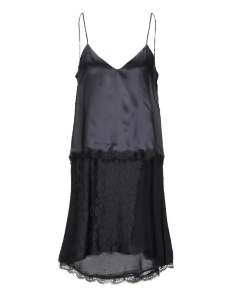 Еще один классный вариант для вечеринок – черное шелковое платье-комбинация с кружевной отделкой. С ним можно составить крутой образ в стиле гранж. Надень его с колготками в мелкую сеточку, грубыми ботинками на тракторной подошве и заверши наряд многослойными серебристыми украшениями, небрежной укладкой и макияжем с акцентом на глаза. Если хочешь более сдержанный лук, то выбирай обычные капроновые колготки, классические лодочки или блестящие босоножки, а в качестве завершающих деталей подойдут минималистичные серьги-кольца и аккуратная подвеска на тонкой цепочке.
