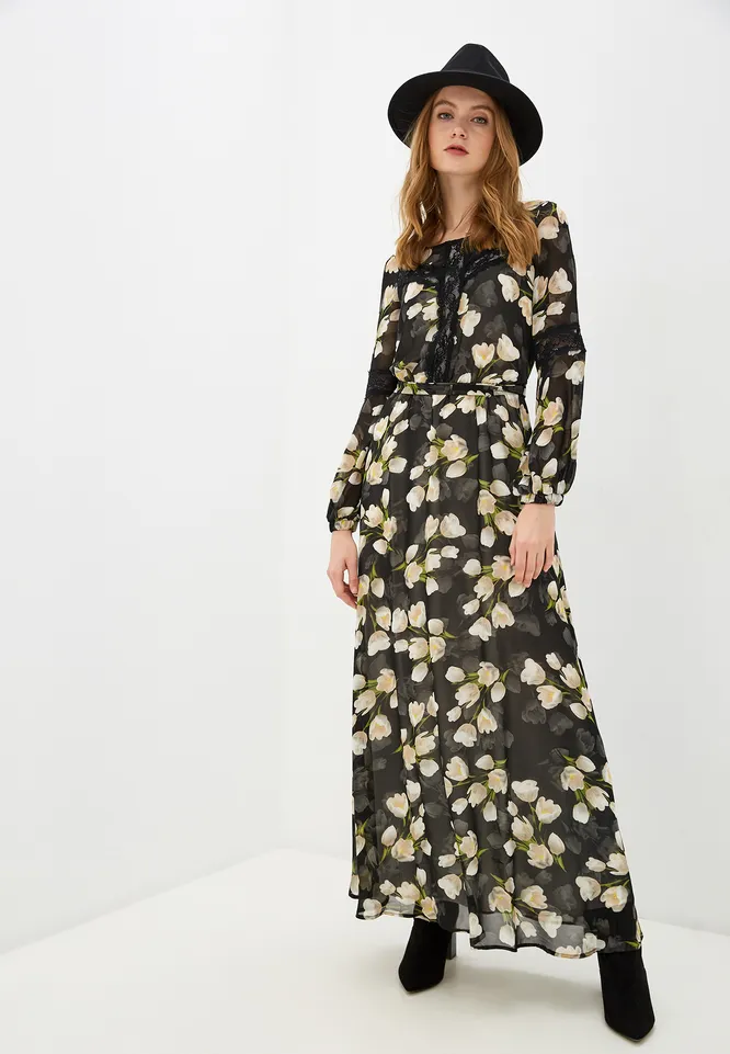 Для создания эффектного, но некричащего образа подойдет длинное платье из шелка с цветочным принтом. Дополни его замшевыми ботфортами, фетровой шляпой с широкими полями и накинь поверх элегантное пальто макси, если собираешься пойти на неформальную встречу или на выставку в музей. Для создания более нарядного образа попробуй скомбинировать его с ремнем, украшенным акцентной пряжкой, длинными серьгами и остроносыми ботильонами на шпильке. В качестве верхнего слоя используй удлиненный блейзер или классический мужской пиджак.