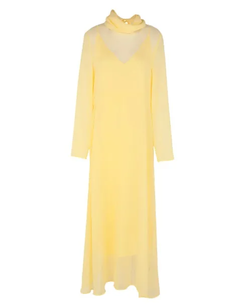 Это длинное шелковое платье с рукавами станет основой для элегантных, немного богемных образов и сделает тебя звездой любой вечеринки. Оно гармонично смотрится как с нарядными, так и с более сдержанными аксессуарами и обувью. В первом случае предлагаем носить его с обувью из серебристой металлизированной кожи и мерцающими украшениями (можно даже добавить пояс, усыпанный кристаллами, во втором – с минималистичной сумочкой с жестким каркасом и нейтральной обувью природных оттенков (горчичный, бежевый, бордовый, темно-зеленый).