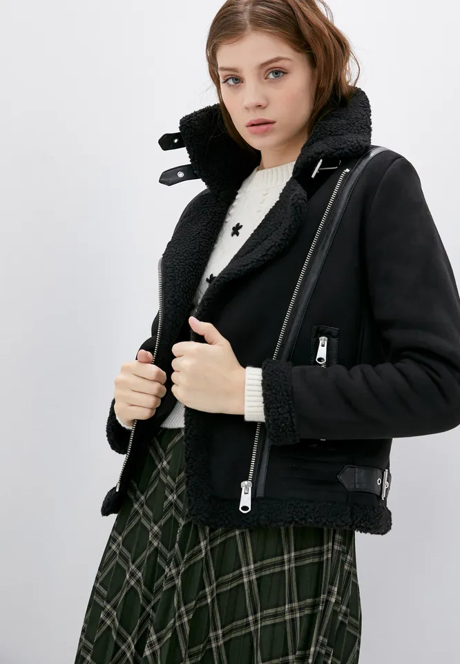 В сочетании с голубыми джинсами и кремовым свитером куртка-авиатор создаст удобный и стильный образ для повседневных активностей. Не бойся ее носить и с классическими брюками и изящными ботильонами – немного контрастов в наряде точно не помешают.