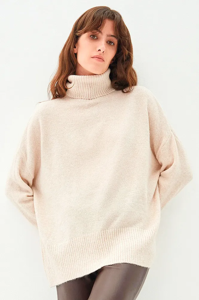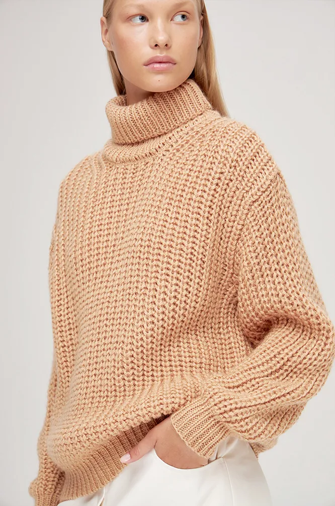 Оттенок свитера напоминает кофе с молоком. Спокойный и мягкий, он создает атмосферу уюта. Отлично подходит на каждый день и гармонично дополнит образ в любом стиле.