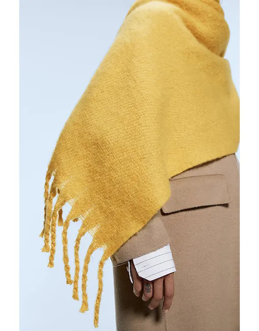 Шарф желтого или красного цвета позволит тебе противостоять угрюмой зиме.