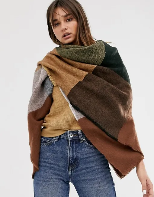 Такой шарф сам по себе самодостаточная деталь одежды. Если ты хочешь укротить это буйство красок, выдержи весь образ в соответствующих цветах, чтобы получился тотал-лук. Сомневающиеся могут остановиться на простом варианте с нейтральными цветами остального комплекта, где акцент будет только на ярком аксессуаре.