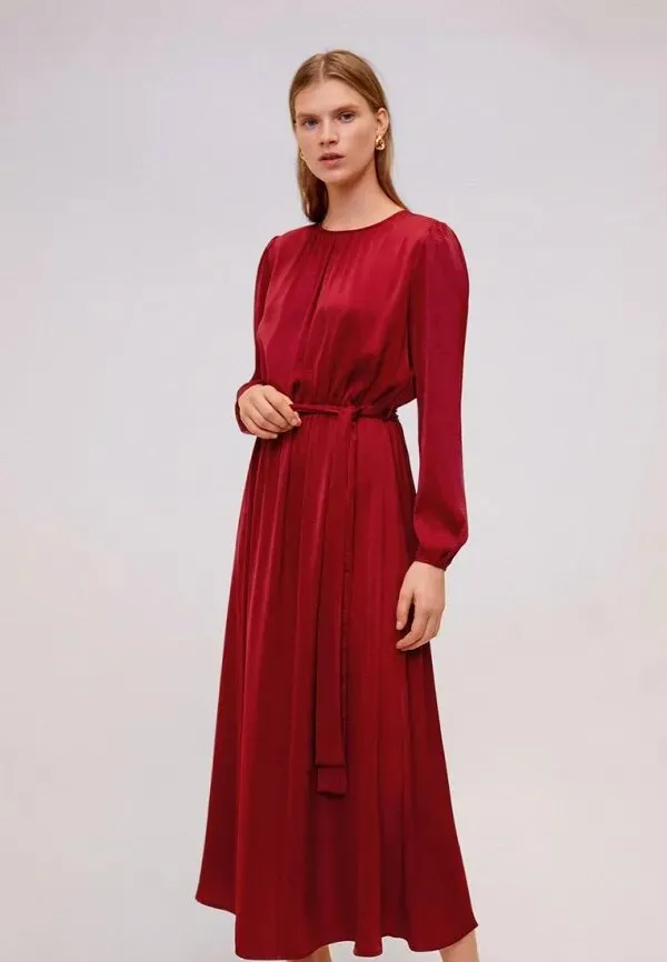 Красное длинное платье А-силуэта, Mango