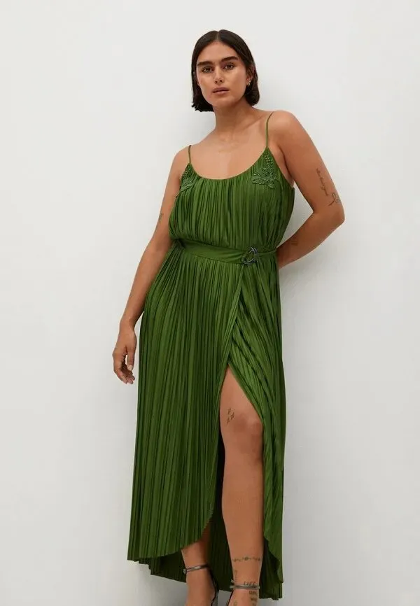 Зеленое платье с плиссировкой, Violeta by Mango