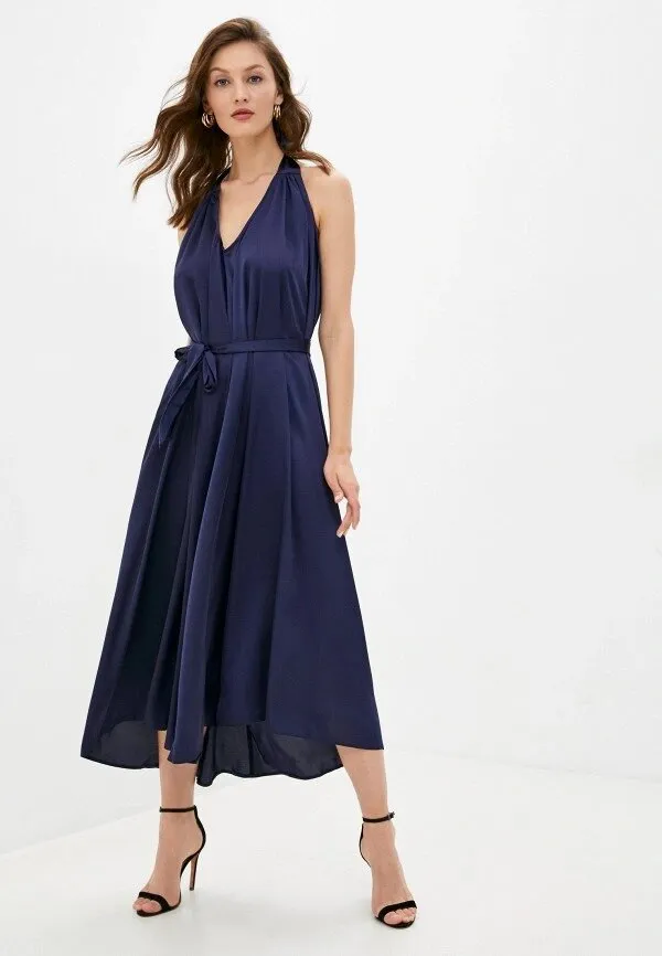 Стильное платье с открытой спиной и юбкой А-силуэта освежит твой привычный стиль. Особенно эффектно модель смотрится в паре с винтажными туфлями и серьгами-кольцами.