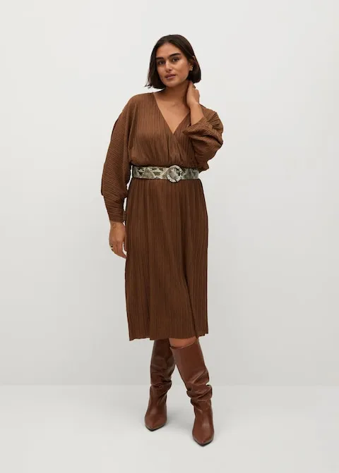 Плиссированное платье с поясом, Violeta by Mango