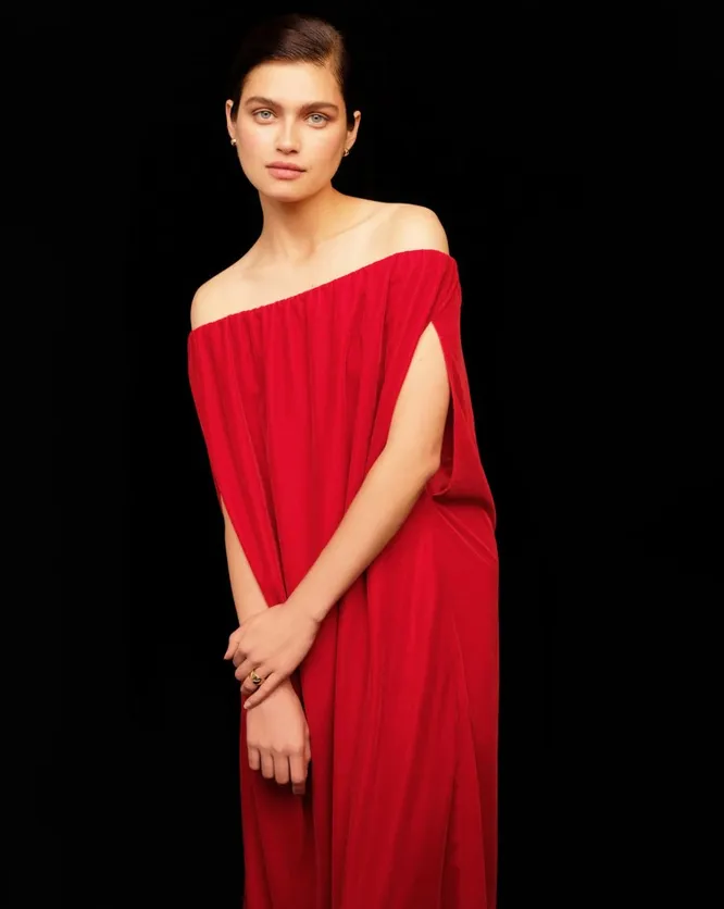 Красное платье свободного кроя станет удачной инвестицией на Новый год, если ты предпочитаешь красивые и удобные вещи. Примеряй наряд с балетками или пастельными мюли.